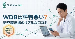 WDBは理学系研究職派遣のシェアNo.1で、全国80拠点超という圧倒的なネットワークを持っています。化学・バイオだけでなく物理・工学系の案件もカバーしているため、分野の幅ではWDBが最も広いです。登録派遣と正社員型派遣の両方を扱っており、雇用形態を選べる柔軟さもあります。
